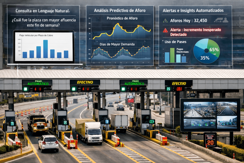 Con modelos de Machine Learning, el sistema aprende patrones y prevé picos de demanda en casetas.